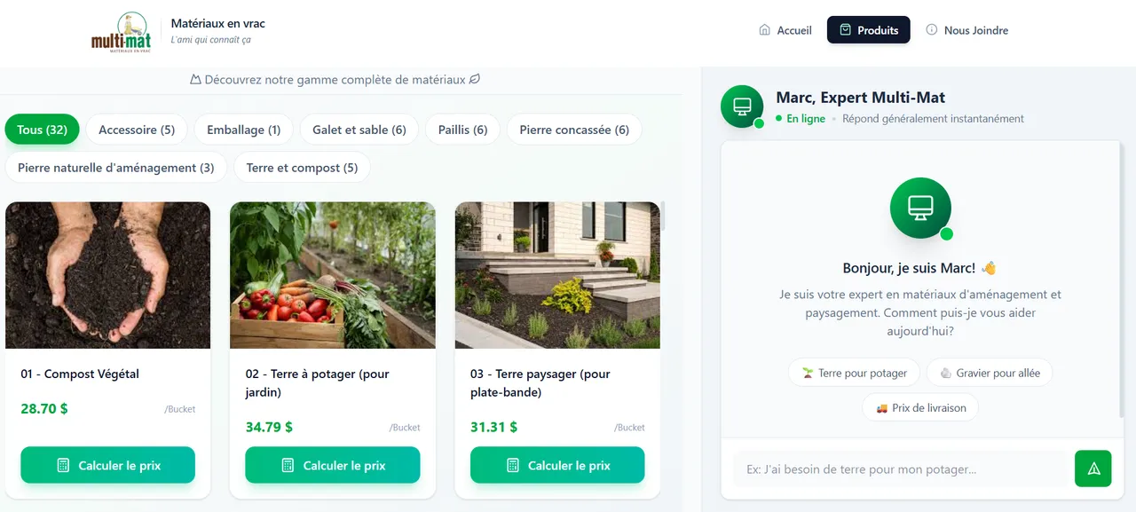 site de gestion de matériaux de construction avec inventaire en temps réel et integration IA